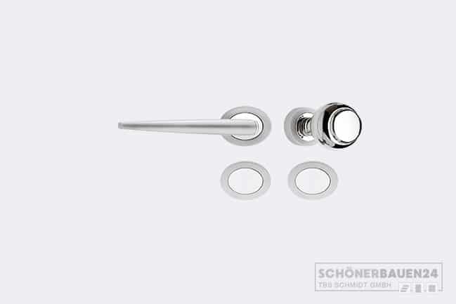 Patentierte 3-teiliger Schraubrosette und Hochhaltefeder geprüft nach DIN EN 1906 Gebrauchskategorie GK3. Die Wechselgarnitur beinhaltet den Knopf K382-R2 sowie einen Schraubwechselstift.