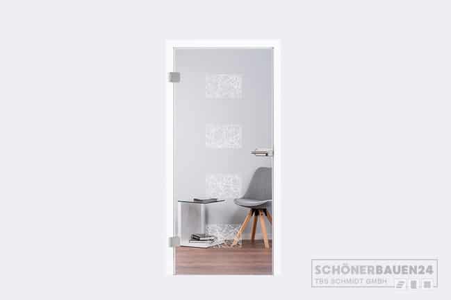 Ganzglastür aus 8 mm ESG Klarglas mit einseitiger Lasermattierung.