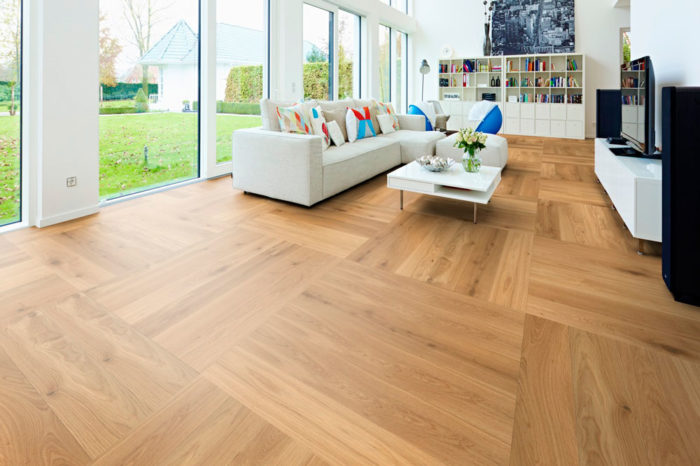 Holzboden als Parkett ausgeführt.